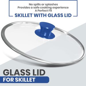 12 inch Saute Fry Pan Pre-Seasoned Cast Iron Skillet With Lid, Frying Pan, Cast Iron Pan, Safe Grill Cookware for Indoor & Outdoor Use – Cooking Gift for Men & Women (Blue)