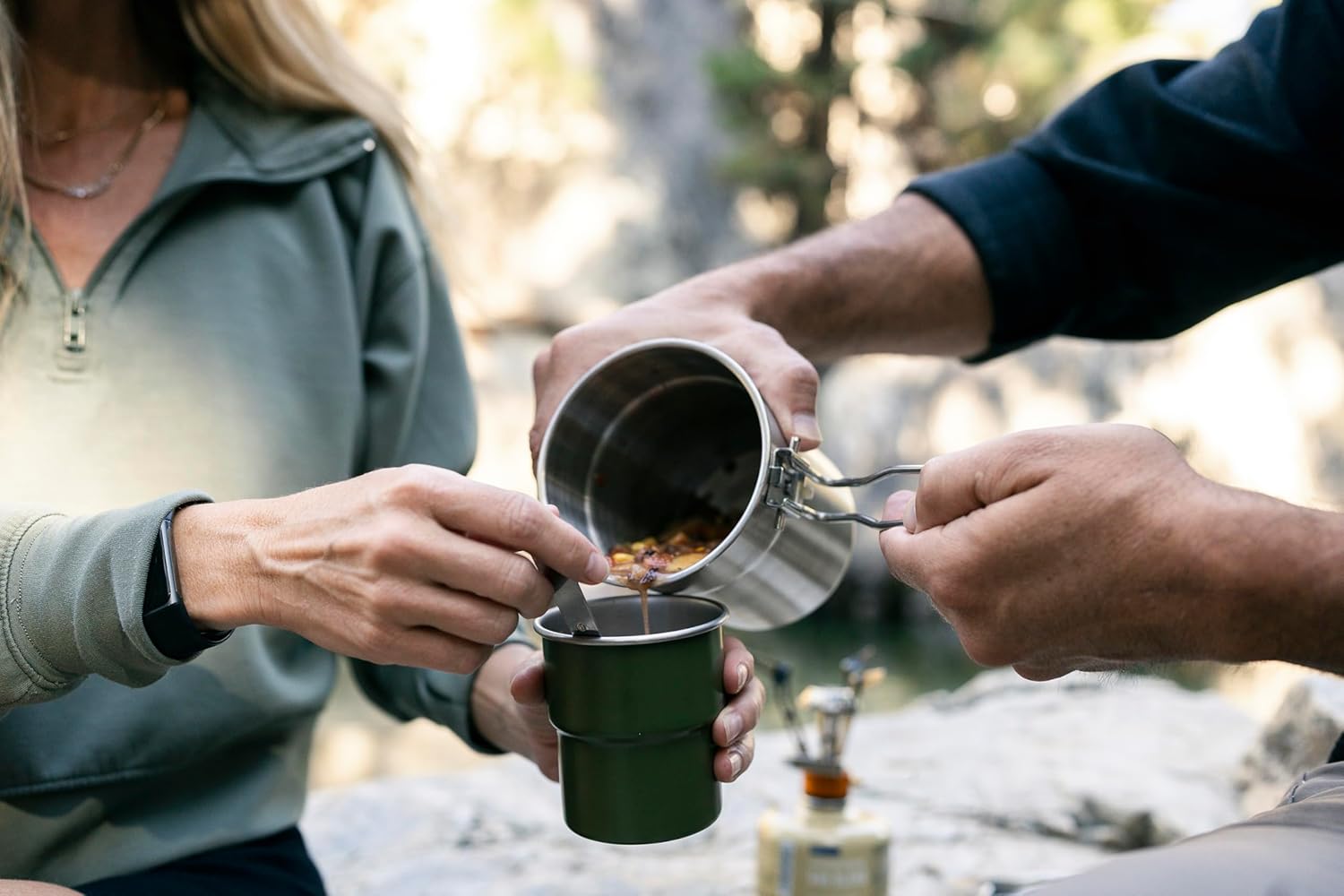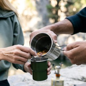 - Set includes: 1 x 1 L pot with lid, 2 x 10 oz. cups and a mesh carry bag