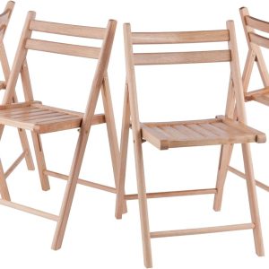 4-PC Folding Chair Set ,Natural Finish, Set of 4, Wood quantity