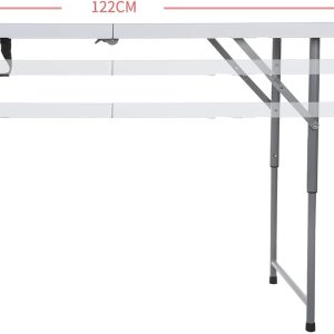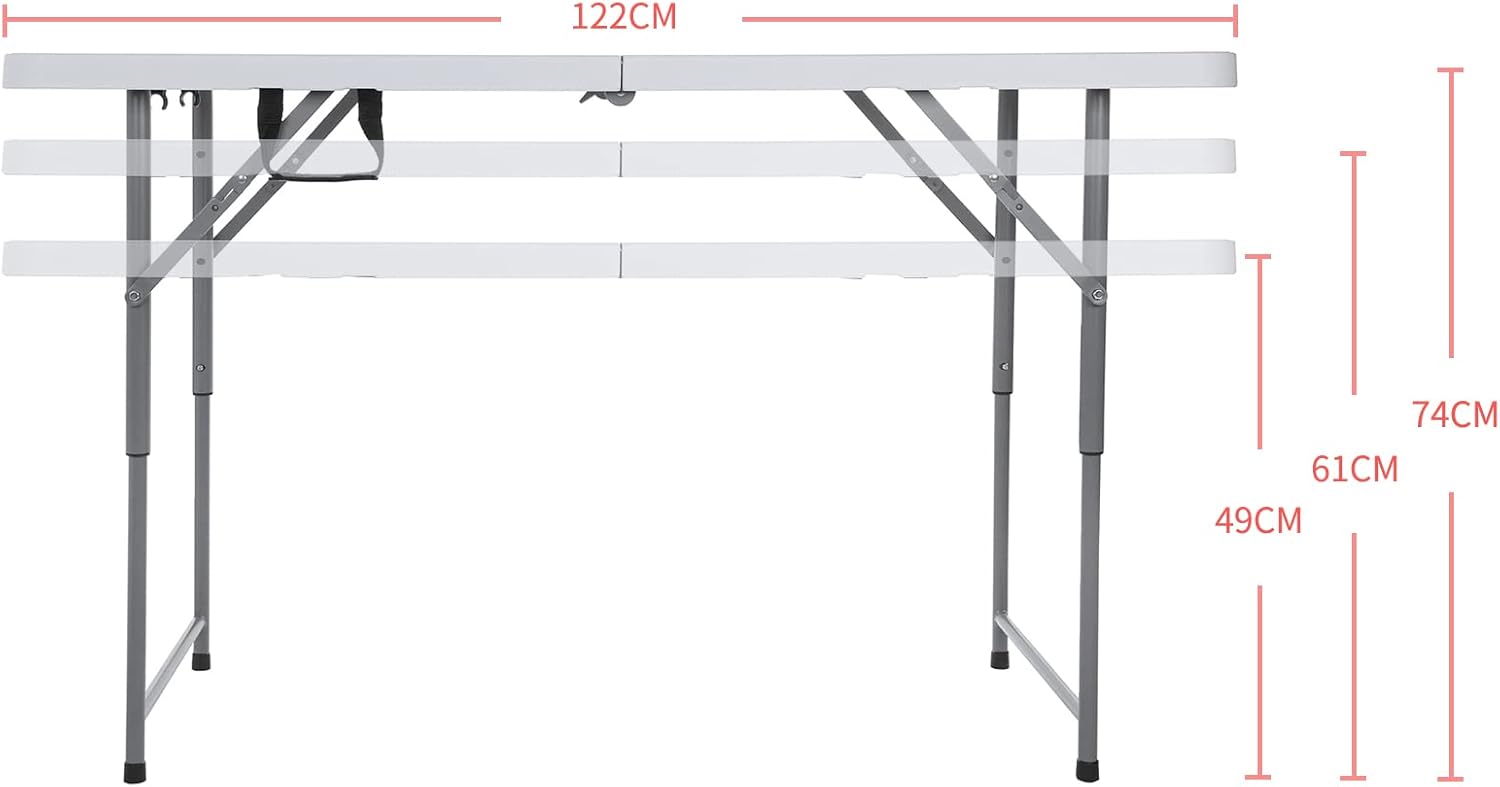 • [OVERALL DIMENSIONS]folding table weighs about 26 pounds, and the unfolded size is 48″ L x 24″ W x (19.3-24-29″ )H; the folded size is 24″ L x 29″ W x 3″ H enough space for 6-8 adults,which takes up very little space, quite easy for storage.