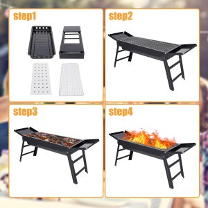 • 【FOLDABLE DESIGN】 The grill has a foldable design, which can bring you a convenient and ultimate grilling experience, and is the perfect companion for your outdoor camping picnic. Just open it up and enjoy a delicious barbecue, and when you’re done, just fold it up and put it in a specialized backpack for easy carrying.